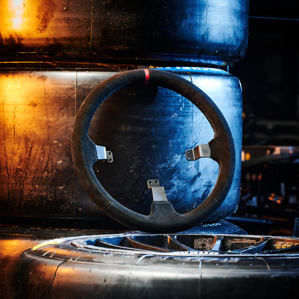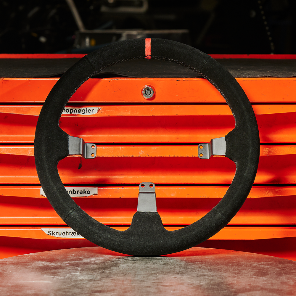 The 340 mm suede rim features an ergonomic design that enhances control while blending racing heritage with a luxurious feel, ensuring superior grip and comfort.