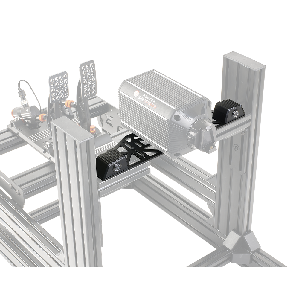 The t-slots in the bottom of the wheelbase allows you to slide your wheelbase back and forth on the bracket. This mounting solution maximizes leg space in your setup and clears the way for comfortable and fully immersive sim racing.