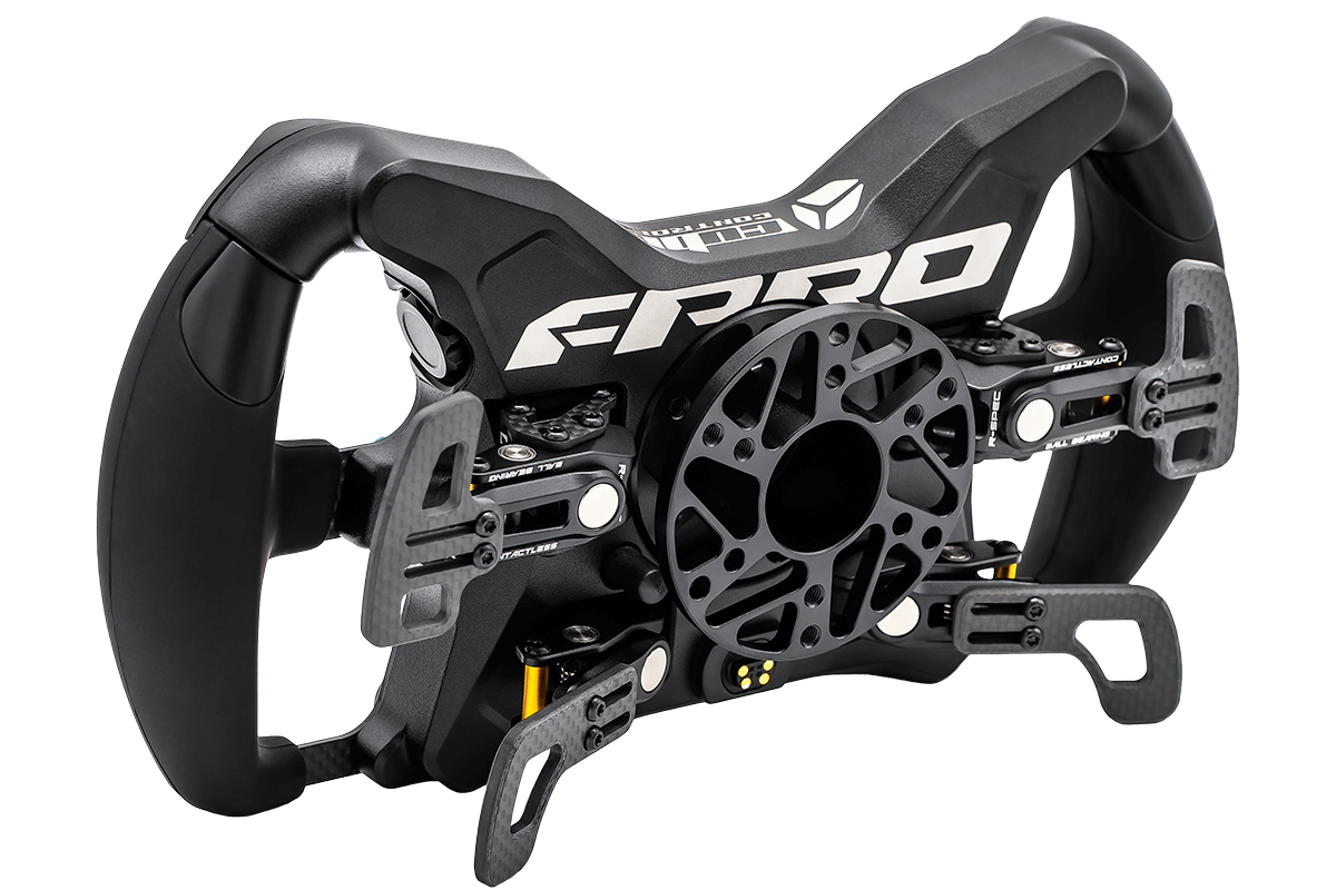 The F-Pro sets a new standard in sim racing, delivering cutting-edge technology and premium craftsmanship. Built from CNC-machined aluminum and carbon fiber, it offers an ultra-light yet robust structure. With advanced wireless connectivity, customizable inputs, and a refined ergonomic grip, the F-Pro ensures total control and responsiveness for the most demanding drivers.