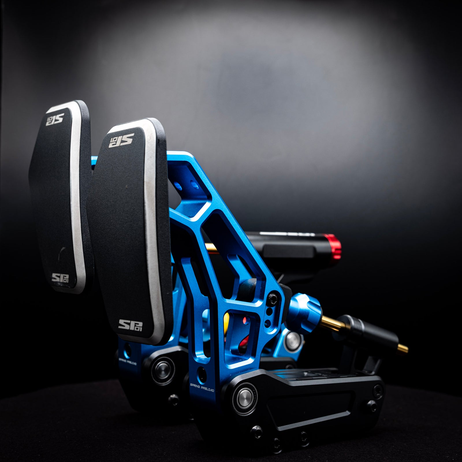 CNC-machined 6061/7075 aluminum pedals with FEM-optimized, flex-free structure, press-fit bearings on all pivots, and GT style footplates.